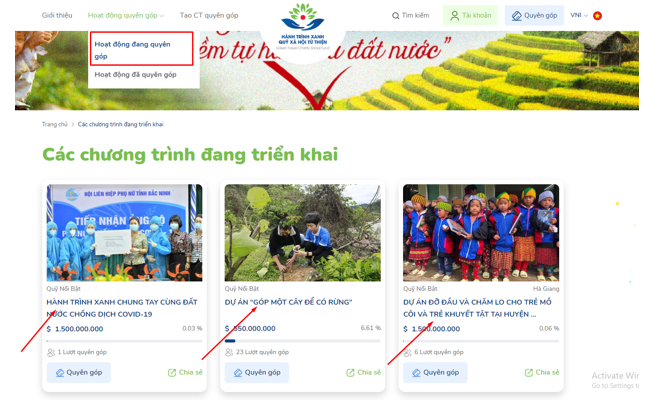 Bước 1: Chọn chương trình cần quyên góp trong danh sách các chương trình.
