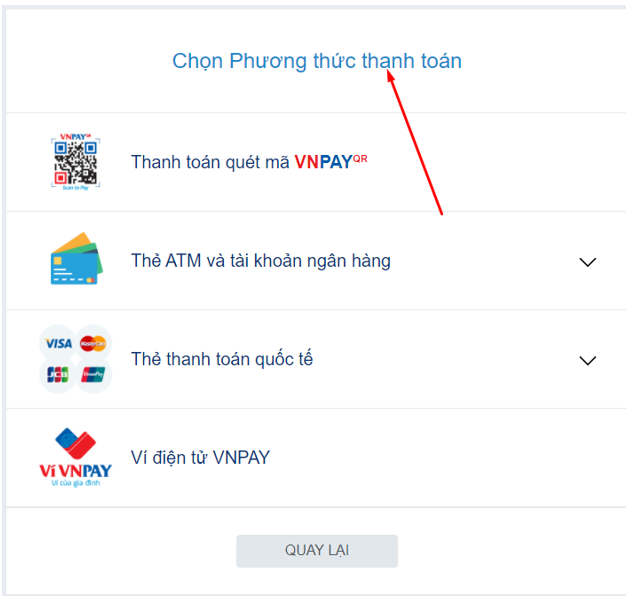 Chọn phương thức thanh toán theo các phương thức dưới dây.