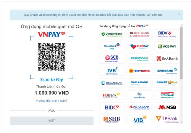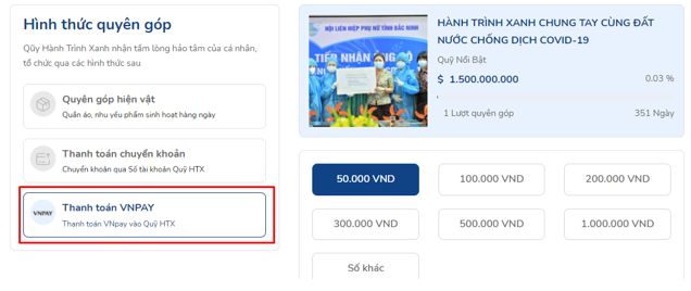 3.3 Quyên góp qua cổng Vnpay