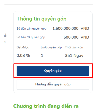 Bược 2: Ấn vào nút Quyên góp trong chi tiết chương trình