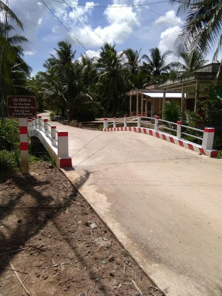 Nhằm tạo điều kiện thuận lợi cho người dân đi lại, trẻ em đi học an toàn, giúp người dân vận chuyển hàng hoá thuận lợi để bán được giá tốt hơn, Quỹ Hành Trình Xanh cùng Ngân hàng NCB phát tâm xây dựng cây cầu kênh 14. UBND tỉnh Bến Tre và bà con đã xây dựng được con đường bê tông liên xã, tuy nhiên lại thiếu kinh phí xây dựng 2 cây cầu, vì vậy Quỹ Hành Trình Xanh cùng NCB Gieo hạt đã ủng hộ 1 cây cầu dài 8m, rộng 3,9m với tổng kinh phí xây dựng là 120 triệu đồng.